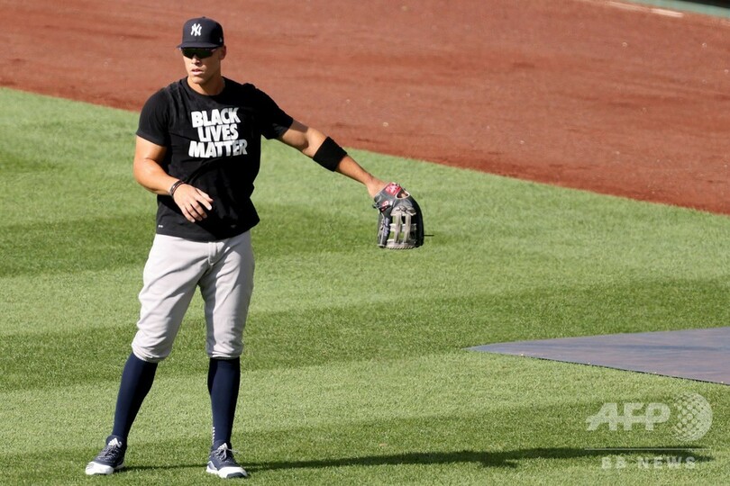 【7月24日 AFP】(更新)米大リーグ(MLB)は23日、新型コロナウイルスの影響で開幕が遅れた2020年シーズンがスタートし、選手たちは試合前に抗議運動「黒人の命は大切(Black Lives Matter)」に連帯を示して膝つきを行った。