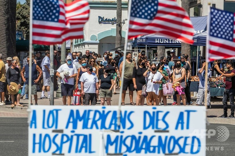 【7月24日 AFP】米ジョンズ・ホプキンス大学(Johns Hopkins University)は23日、米東部時間同日午後8時半(日本時間24日午前9時半)までの24時間に確認された新型コロナウイルスの新規感染者数について、過去最多の7万6570人だったと発表した。米国内の感染者数は同日、世界最多の403万2430人となり、400万人の大台を突破している。