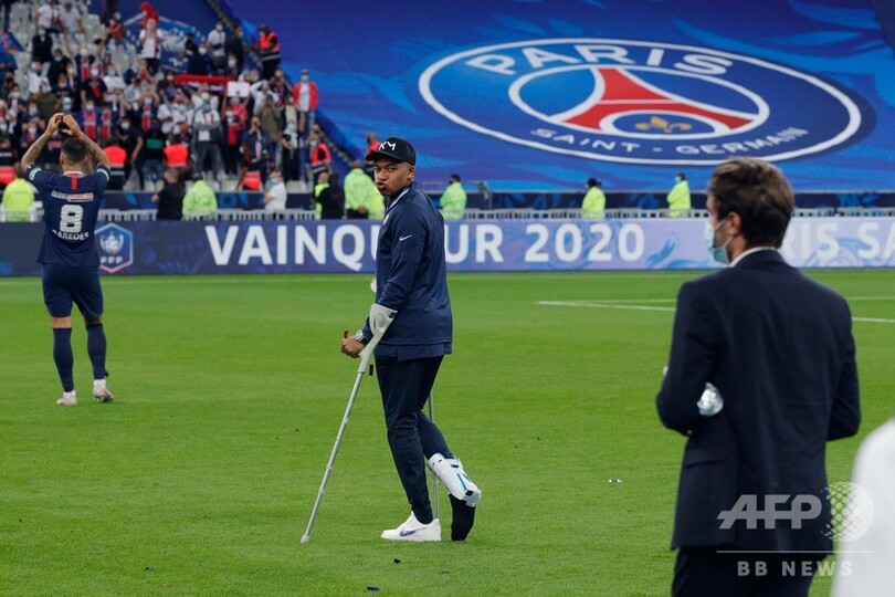 24日に行われたフランス杯(French Cup 2019-20)決勝でエムバペは、サンテティエンヌ(AS Saint-Etienne)の主将ロイク・ペラン(Loic Perrin)から悪質なタックルを受けて負傷。PSGは検査の結果、けがは「重度の靱帯(じんたい)損傷を伴う右足首の捻挫」だと発表した。