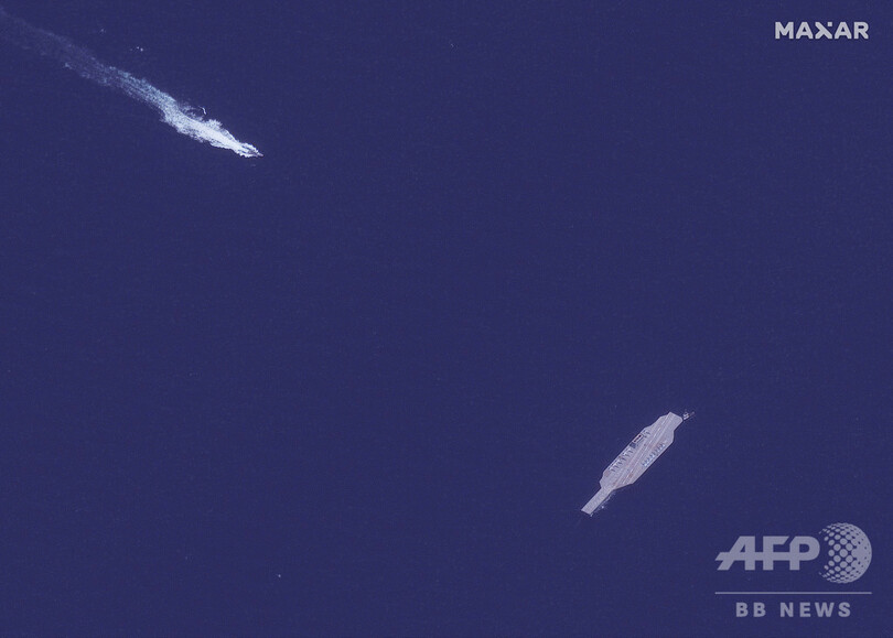 これを受けて米海軍は、「イランが停泊中の空母に似せた艦の模型への攻撃を含む軍事演習を実施したことを把握している」と明かし、「無責任かつ無謀」と批判した。(c)AFP