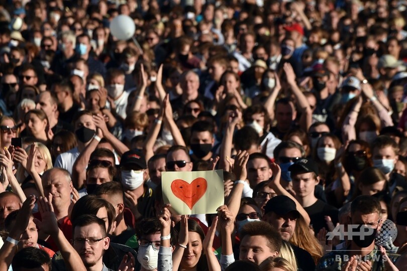 2児の母で専業主婦だったチハノフスカヤ氏に政治経験はないが、ミンスクの広場に大勢の支持者が詰め掛けた。現場で取材したAFP記者によると、ベラルーシでは過去10年で最大の野党集会だったとみられる。