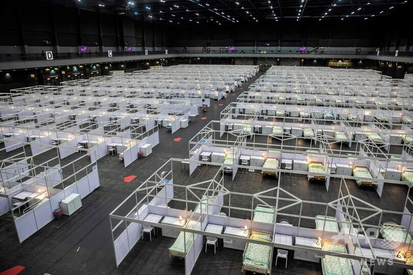 【8月1日 AFP】新型コロナウイルスの新たな流行の波が押し寄せている香港で1日、展示施設を転用した野営病院が稼働を開始した。病床数は500で、新型コロナウイルス感染者のうち、症状が安定している患者を受け入れる。