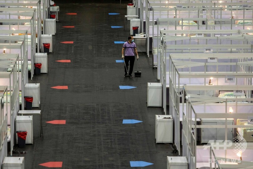 【8月1日 AFP】新型コロナウイルスの新たな流行の波が押し寄せている香港で1日、展示施設を転用した野営病院が稼働を開始した。病床数は500で、新型コロナウイルス感染者のうち、症状が安定している患者を受け入れる。