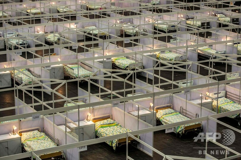 【8月1日 AFP】新型コロナウイルスの新たな流行の波が押し寄せている香港で1日、展示施設を転用した野営病院が稼働を開始した。病床数は500で、新型コロナウイルス感染者のうち、症状が安定している患者を受け入れる。