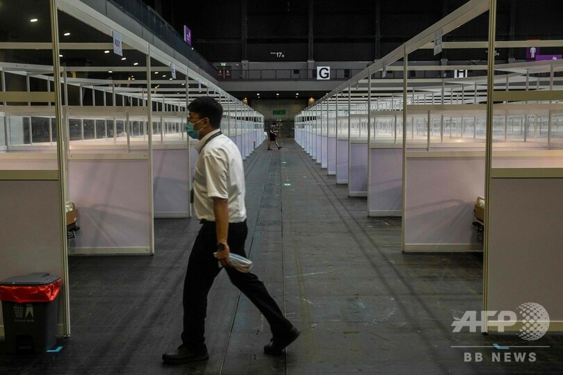 【8月1日 AFP】新型コロナウイルスの新たな流行の波が押し寄せている香港で1日、展示施設を転用した野営病院が稼働を開始した。病床数は500で、新型コロナウイルス感染者のうち、症状が安定している患者を受け入れる。