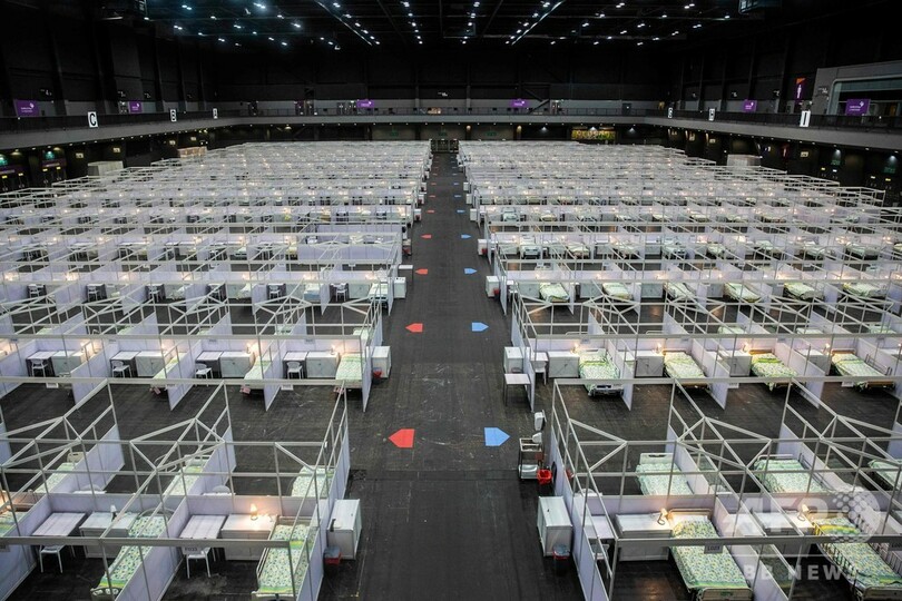 【8月1日 AFP】新型コロナウイルスの新たな流行の波が押し寄せている香港で1日、展示施設を転用した野営病院が稼働を開始した。病床数は500で、新型コロナウイルス感染者のうち、症状が安定している患者を受け入れる。