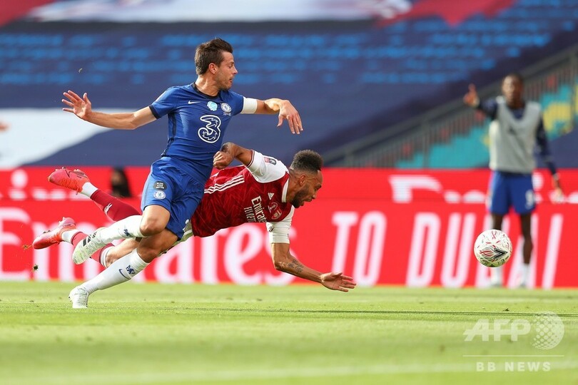 無観客のウェンブリー・スタジアム(Wembley Stadium)でチェルシーは、クリスティアン・プリシッチ(Christian Pulisic)のゴールで幸先良く先制したが、アーセナルはオーバメヤンがペナルティーエリア内でセサル・アスピリクエタ(Cesar Azpilicueta)に倒されて得たPKを自ら決めて同点とした。