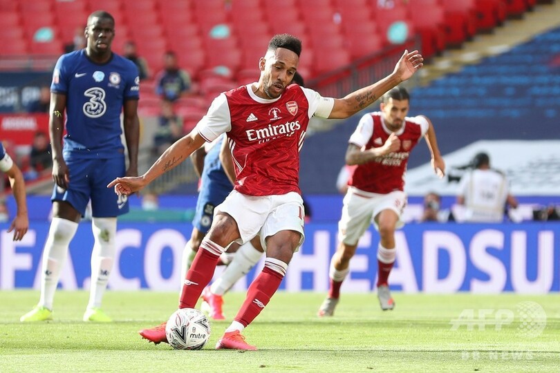 無観客のウェンブリー・スタジアム(Wembley Stadium)でチェルシーは、クリスティアン・プリシッチ(Christian Pulisic)のゴールで幸先良く先制したが、アーセナルはオーバメヤンがペナルティーエリア内でセサル・アスピリクエタ(Cesar Azpilicueta)に倒されて得たPKを自ら決めて同点とした。