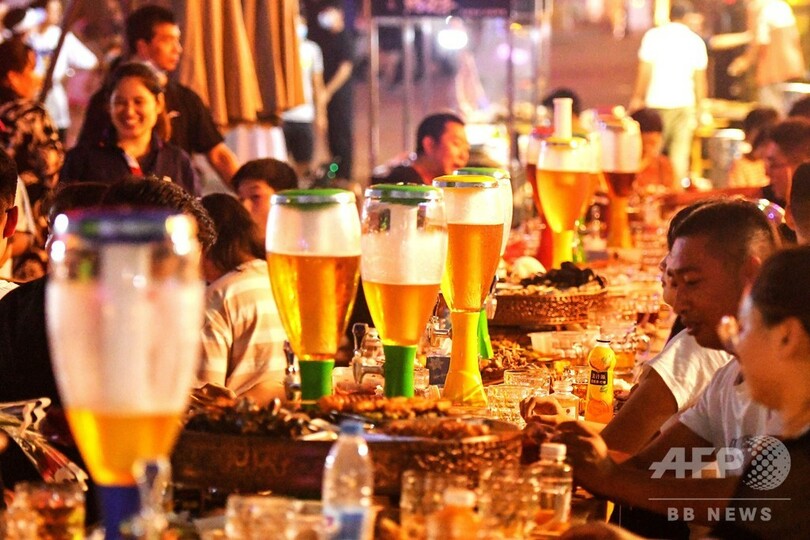 【8月3日 AFP】中国・山東(Shandong)省青島(Qingdao)で先週末、毎年恒例のビール祭りが開幕した。数千人がマスクを外し、新型コロナウイルスの不安もしばし忘れて乾杯した。