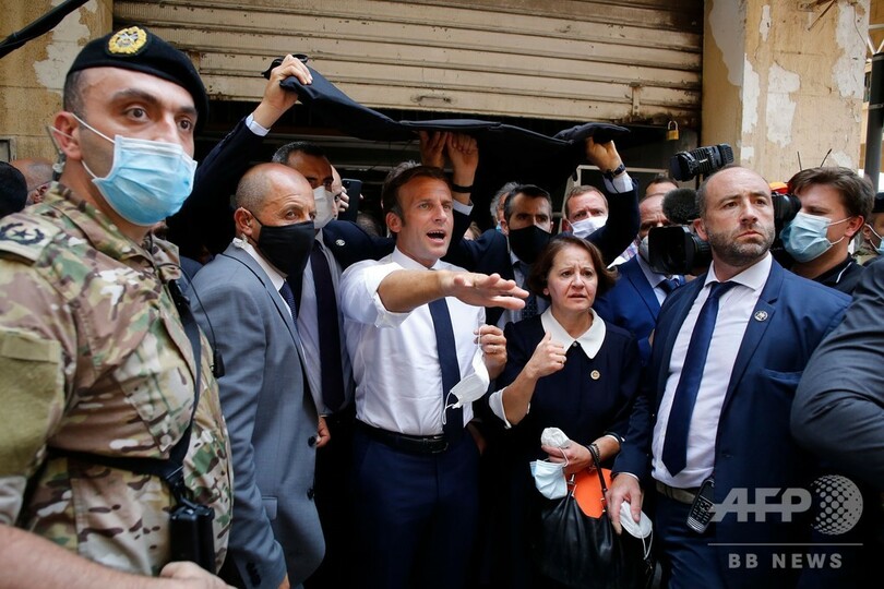 マクロン大統領はベイルート到着時に「レバノンは独りではない」とツイッター(Twitter)に投稿。その後、フランス政府が国際的な救援活動の調整役を担うと表明した。