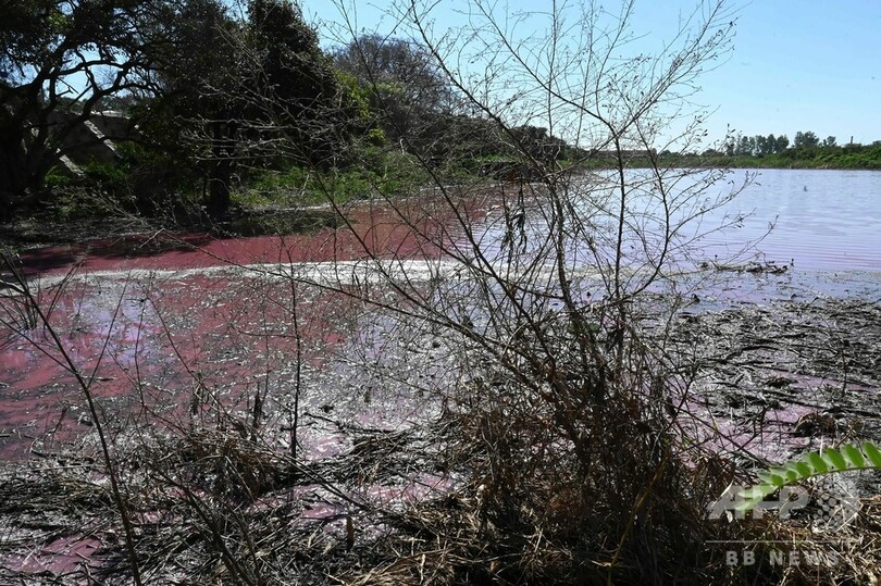 湖がピンク色に…原因は皮なめし工場か パラグアイ