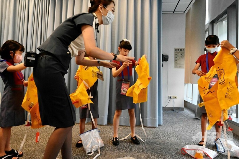 桃園(Taoyuan)にある中華航空(China Airlines)の本社では8日午前、子ども50人がレッスンに参加し、模擬客室で接客を学んだ。その後、制服に身を包んだ子どもたちは、約2時間の空の旅に出発。このフライトは台湾上空から日本の領空まで飛行した後、台湾東岸に戻る。