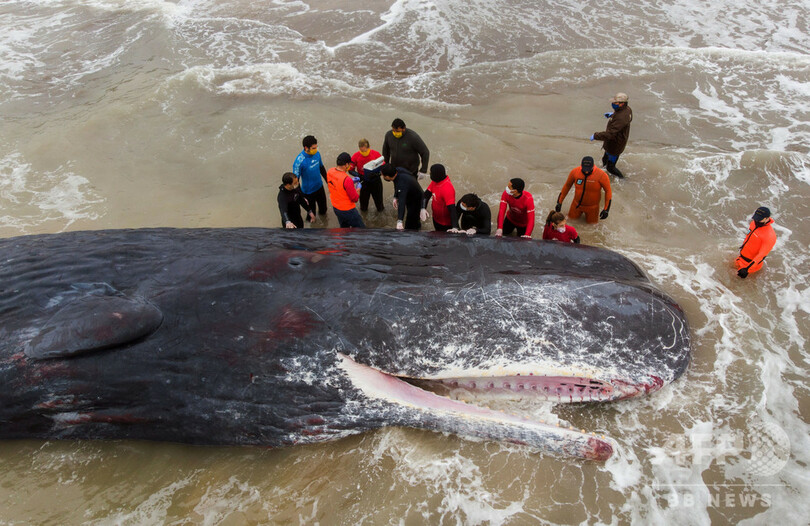 浜辺に全長15mのクジラ、救助活動報われず アルゼンチン