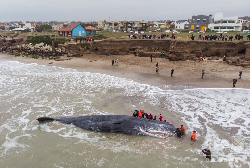 浜辺に全長15mのクジラ、救助活動報われず アルゼンチン