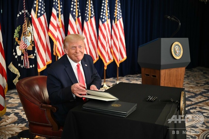 対応に当たっていることをアピールしようと、トランプ氏は8日、コロナ流行で打撃を受けた国民への経済支援を延長する大統領令に署名。議会では新たな経済刺激策をめぐり与野党が対立し、合意に至っていなかった。(c)AFP