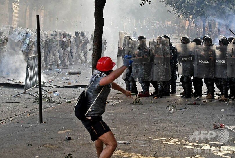 爆発は当局の怠慢が原因だとして激怒したレバノン国民は反政府デモを行い、政府軍と衝突した。(c)AFP
