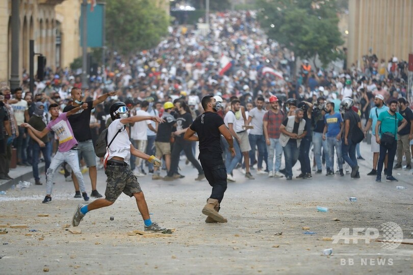 爆発は当局の怠慢が原因だとして激怒したレバノン国民は反政府デモを行い、政府軍と衝突した。(c)AFP
