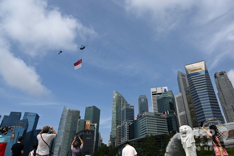 【8月10日 AFP】シンガポールは9日、55回目の独立記念日を迎えた。国旗を掲げたヘリコプターが青空を彩り、街中を戦車が走行し、マーライオン公園(Merlion Park)などでは、国旗を手に写真撮影に臨む人々の姿も見られた。夜にはガーデンズ・バイ・ザ・ベイ(Gardens by the Bay)上空で花火が打ち上げられ、祝福ムードに包まれた。(c)AFP