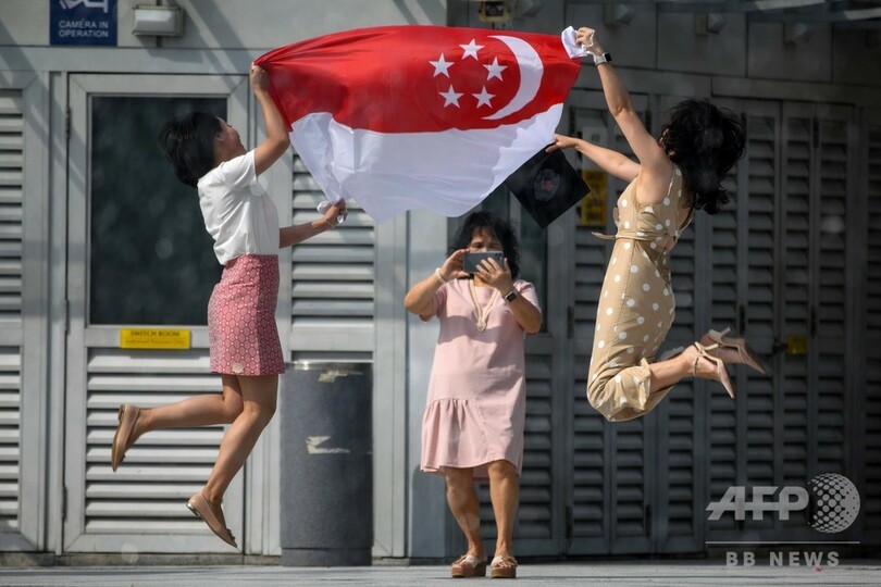 【8月10日 AFP】シンガポールは9日、55回目の独立記念日を迎えた。国旗を掲げたヘリコプターが青空を彩り、街中を戦車が走行し、マーライオン公園(Merlion Park)などでは、国旗を手に写真撮影に臨む人々の姿も見られた。夜にはガーデンズ・バイ・ザ・ベイ(Gardens by the Bay)上空で花火が打ち上げられ、祝福ムードに包まれた。(c)AFP
