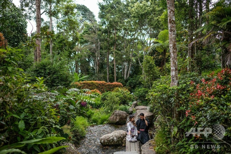 【8月12日 AFP】マレーシア中部・パハン(Pahang)州にある、日本をモチーフにした「ジャパニーズビレッジ(Japanese Village)」で11日、浴衣姿で記念撮影を楽しむ来場者の姿が見られた。丘の上にある「ジャパニーズビレッジ」には、庭園内にアトラクションが点在している。(c)AFP