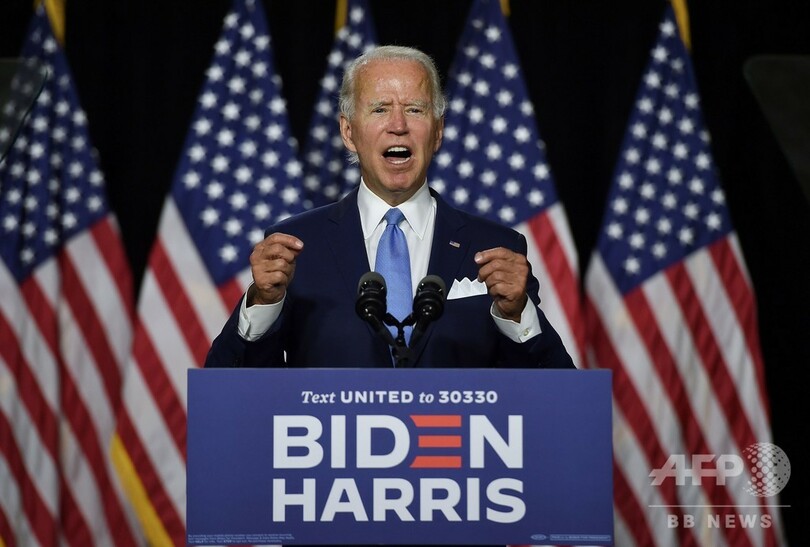 世論調査での支持率がトランプ氏を上回っているバイデン氏は、トランプ氏が新型コロナウイルスの危機的状況でリーダーシップを発揮してこなかったと批判。ハリス氏と共に「国内外でトランプ氏とペンス氏が生み出した混乱」を立て直していくと強調した。(c)AFP