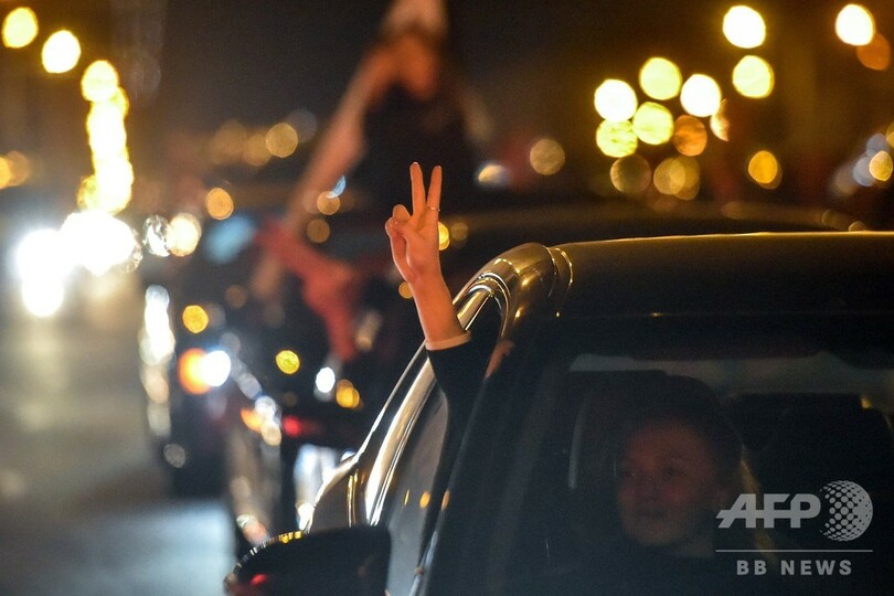 首都ミンスク中心部では、通りに繰り出した群衆が手に花や点灯した携帯電話を掲げ、クラクションで支援を表明する車が通ると歓声を上げた。
