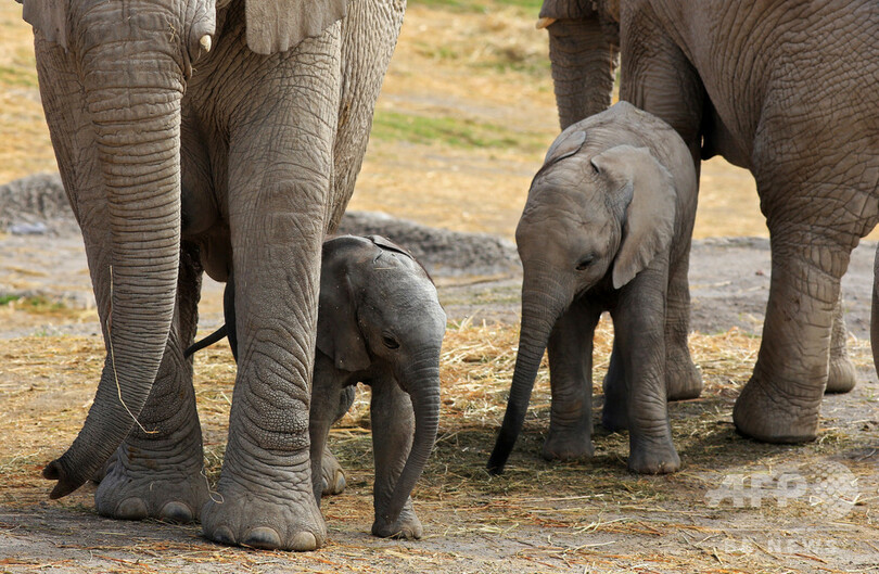 このアフリカン・サファリ(Africam Safari)では14日、お母さんの脚の間で遊ぶ赤ちゃんゾウの姿が見られた。ディレクターのフランク・カルロス・カマチョ(Frank Carlos Camacho)さんは「ゾウの誕生を見ることは難しい」「時間、羊水などの量、その他の要素を計測することは科学的にとても役立つ」とAFPの取材で説明した。