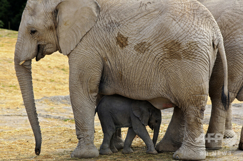このアフリカン・サファリ(Africam Safari)では14日、お母さんの脚の間で遊ぶ赤ちゃんゾウの姿が見られた。ディレクターのフランク・カルロス・カマチョ(Frank Carlos Camacho)さんは「ゾウの誕生を見ることは難しい」「時間、羊水などの量、その他の要素を計測することは科学的にとても役立つ」とAFPの取材で説明した。
