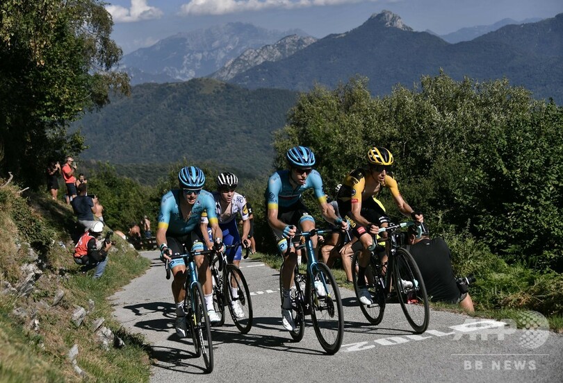 レースはアスタナ(Astana Pro Team)のヤコブ・フグルサング(Jakob Fuglsang、デンマーク)が31秒差をつけて勝利。2位にはチーム・ユンボ・ビスマ(Team Jumbo Visma)のジョージ・ベネット(George Bennett、ニュージーランド)、51秒差の3位にはアスタナのアレクサンドル・ブラソフ(Aleksandr Vlasov、ロシア)が入った。(c)AFP/Emmeline MOORE