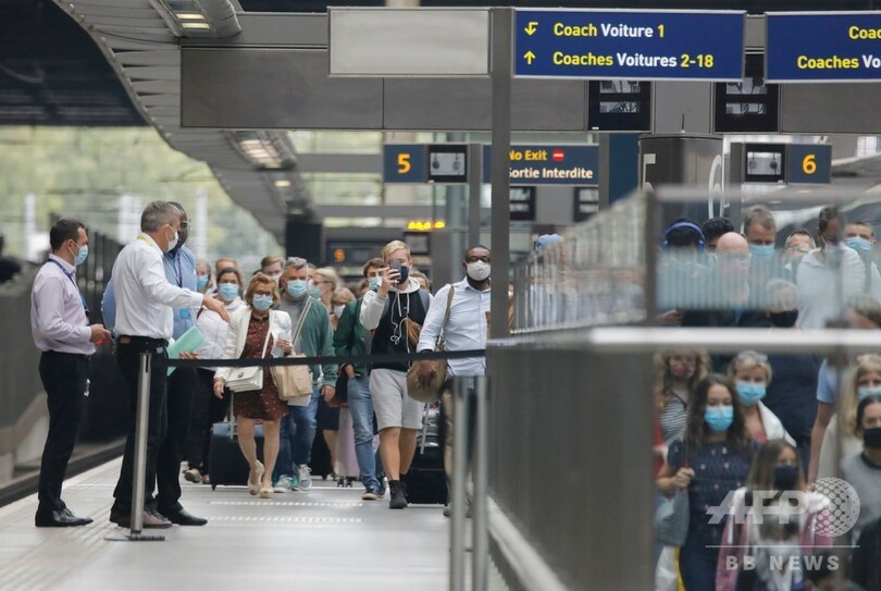 フランスでは1日当たりの新規感染者数が4日連続で2500人超を記録。15日には3000人超と、5月のロックダウン(都市封鎖)解除開始以降最多となった。フランスは英国の自主隔離義務付けの動きを受けて「相互的措置」を取る方針を示しており、休暇中の仏人旅行者も近く厳しい選択を迫られることとなる。(c)AFP / Joe JACKSON with AFP bureaus