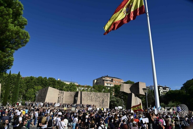 【8月17日 AFP】スペインの首都マドリードで16日、新型コロナウイルス対策として政府が課したマスクの着用義務や制限措置に抗議するデモが開かれた。数百人が参加し、「自由を」などと訴えた。