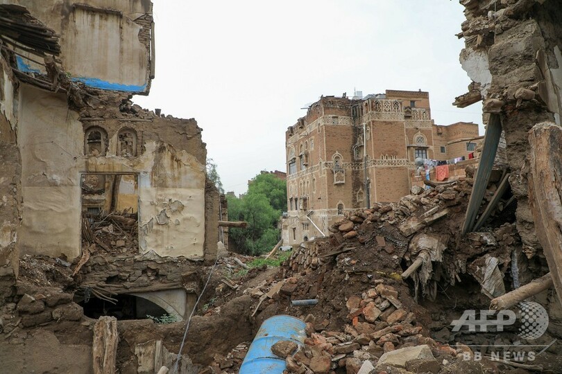 ユネスコは、「世界遺産を含むイエメンの多くの歴史的な地区で、人命と遺産が失われたことを非常に残念に思う」とコメントを発表。「ユネスコは国際的なパートナーと共に、イエメンの文化遺産を保護するために資源と専門知識を提供」し、自治体の再建や支援などを含め、多くのプロジェクトを実施していると述べた。(c)AFP/Abdelkarim al-Marani/ Hadbaa al-Yazidi in Shibam