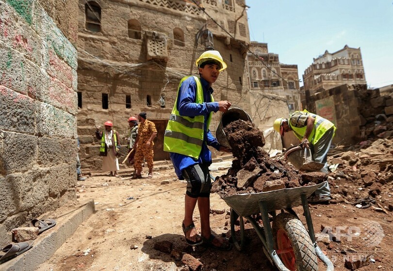 ユネスコは、「世界遺産を含むイエメンの多くの歴史的な地区で、人命と遺産が失われたことを非常に残念に思う」とコメントを発表。「ユネスコは国際的なパートナーと共に、イエメンの文化遺産を保護するために資源と専門知識を提供」し、自治体の再建や支援などを含め、多くのプロジェクトを実施していると述べた。(c)AFP/Abdelkarim al-Marani/ Hadbaa al-Yazidi in Shibam