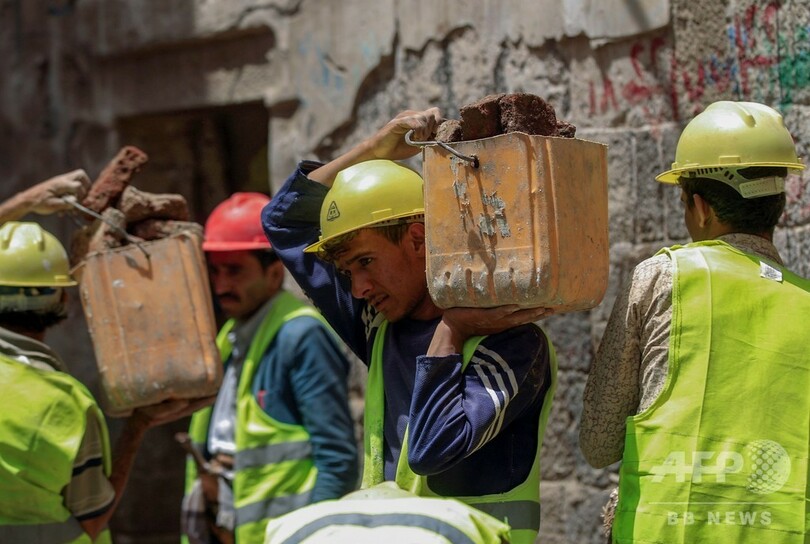 ユネスコは、「世界遺産を含むイエメンの多くの歴史的な地区で、人命と遺産が失われたことを非常に残念に思う」とコメントを発表。「ユネスコは国際的なパートナーと共に、イエメンの文化遺産を保護するために資源と専門知識を提供」し、自治体の再建や支援などを含め、多くのプロジェクトを実施していると述べた。(c)AFP/Abdelkarim al-Marani/ Hadbaa al-Yazidi in Shibam