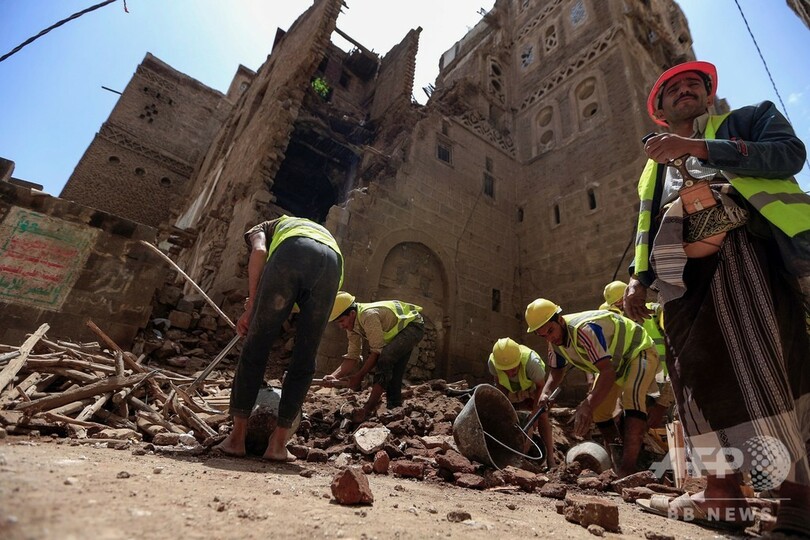 ユネスコは、「世界遺産を含むイエメンの多くの歴史的な地区で、人命と遺産が失われたことを非常に残念に思う」とコメントを発表。「ユネスコは国際的なパートナーと共に、イエメンの文化遺産を保護するために資源と専門知識を提供」し、自治体の再建や支援などを含め、多くのプロジェクトを実施していると述べた。(c)AFP/Abdelkarim al-Marani/ Hadbaa al-Yazidi in Shibam
