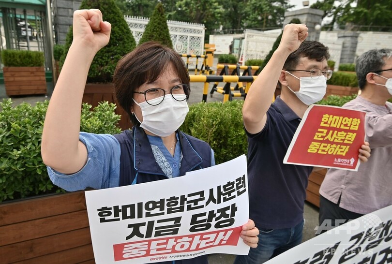 米韓政府は当初、16日に演習を開始する予定だったが、韓国で新規感染者が急増し、大規模な流行の第2波が懸念されたため、今日まで先延ばしされた。(c)AFP
