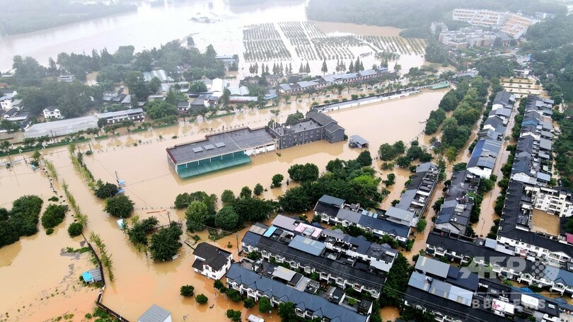 四川省では連日、大雨が続いて各地で豪雨や洪水が発生。多くの集落が浸水し、救助隊が被災者の救助活動に追われている。(c)CNS/JCM/AFPBB News