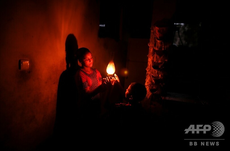 【8月28日 AFP】イスラエルとの緊張が高まる中、パレスチナ自治区ガザ地区(Gaza Strip)唯一の発電所が停止し、同地区南部ハンユニス(Khan Yunis)の貧困世帯でガス灯を使う子どもたち。