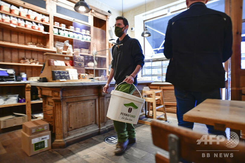 コーヒーかすでキノコ栽培、都心の地産地消 ベルギー企業
