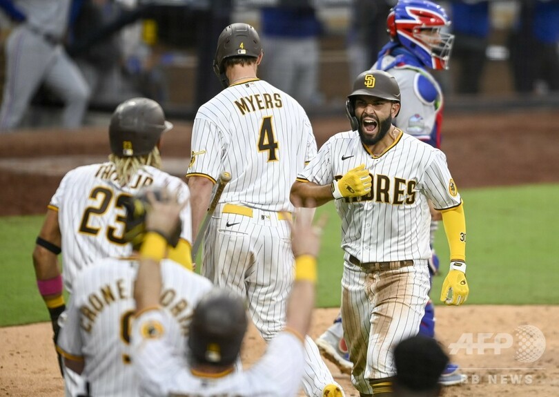 この日の試合は延長戦に突入したが、パドレスが10回裏に8-7でサヨナラ勝ちを収めた。(c)AFP