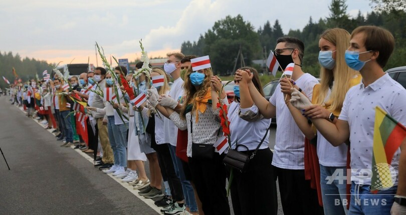 ベラルーシに連帯、バルト3国リトアニアで「人間の鎖」30キロ