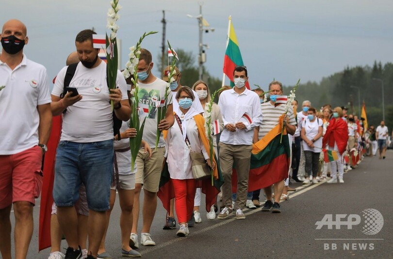 【8月24日 AFP】バルト3国のリトアニアで23日、首都ビリニュスから隣国ベラルーシ国境まで約30キロにわたって最大5万人が手をつないで「人間の鎖」をつくり、大統領選の結果をめぐって大規模な抗議デモを続ける人々に連帯を示した。