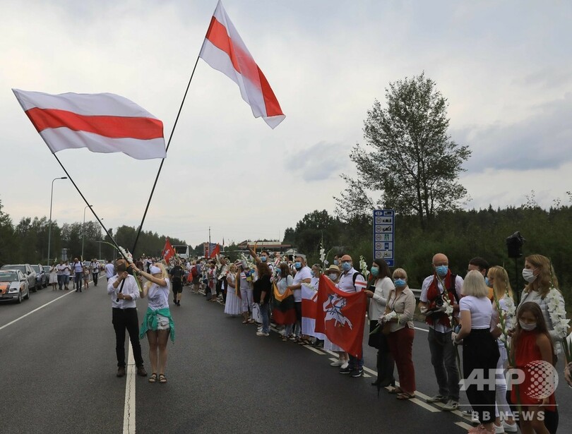 【8月24日 AFP】バルト3国のリトアニアで23日、首都ビリニュスから隣国ベラルーシ国境まで約30キロにわたって最大5万人が手をつないで「人間の鎖」をつくり、大統領選の結果をめぐって大規模な抗議デモを続ける人々に連帯を示した。