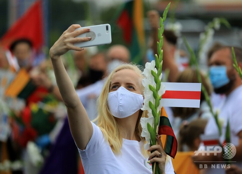 【8月24日 AFP】バルト3国のリトアニアで23日、首都ビリニュスから隣国ベラルーシ国境まで約30キロにわたって最大5万人が手をつないで「人間の鎖」をつくり、大統領選の結果をめぐって大規模な抗議デモを続ける人々に連帯を示した。