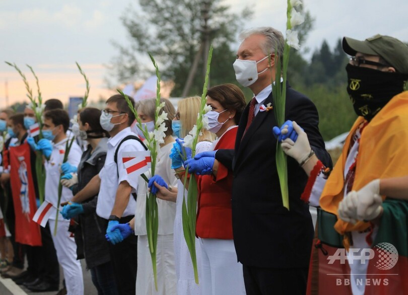 ベラルーシに連帯、バルト3国リトアニアで「人間の鎖」30キロ