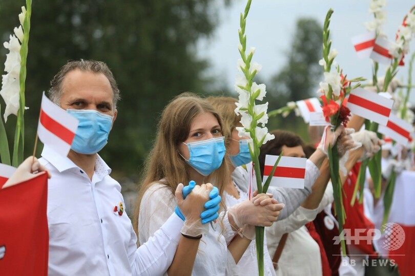 【8月24日 AFP】バルト3国のリトアニアで23日、首都ビリニュスから隣国ベラルーシ国境まで約30キロにわたって最大5万人が手をつないで「人間の鎖」をつくり、大統領選の結果をめぐって大規模な抗議デモを続ける人々に連帯を示した。