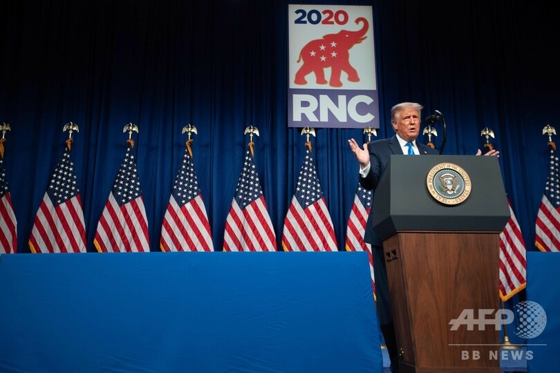 【8月25日 AFP】(更新)米共和党は24日、11月の大統領選に向けた党大会をノースカロライナ州シャーロット(Charlotte)で開き、ドナルド・トランプ(Donald Trump)大統領を党候補に正式指名した。トランプ氏は直後に会場で演説し、おなじみの好戦的かつ陰鬱(いんうつ)なトーンで、野党・民主党が選挙を「盗もう」と画策していると主張した。