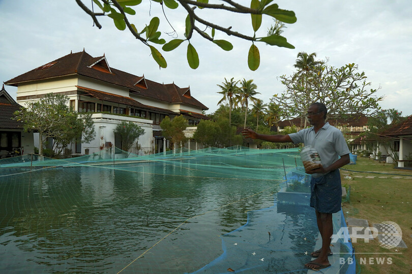 【8月25日 AFP】新型コロナウイルスの流行で経済的な危機に直面しているインド南部の高級リゾートホテルは、プールを養魚場として活用し、経営悪化を食い止めようとしている。