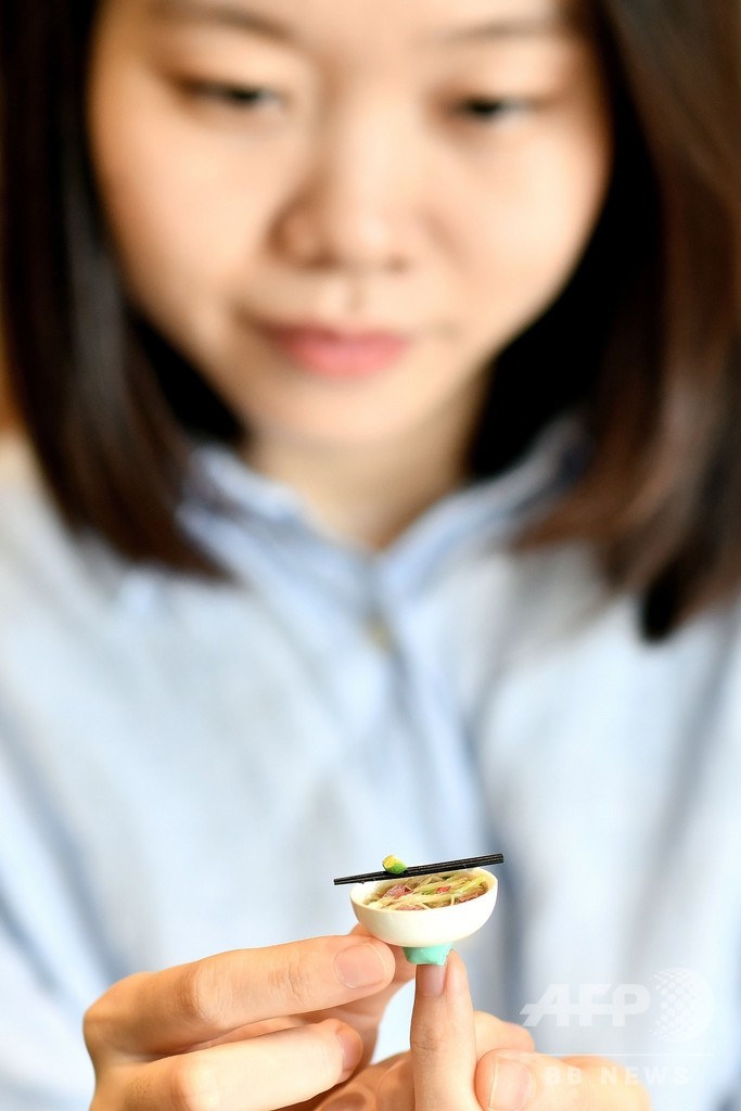 【11月7日 AFP】ベトナム人アーティストのグエン・ティ・ハー・アン(Nguyen Thi Ha An)さん(28)は目を細めて集中し、フォーの入ったわんに赤唐辛子を添える。わんの大きさは、硬貨よりかろうじて大きい程度だ。これは、アンさんが多くの時間を注いでいるミニチュア粘土細工を仕上げる様子だ。