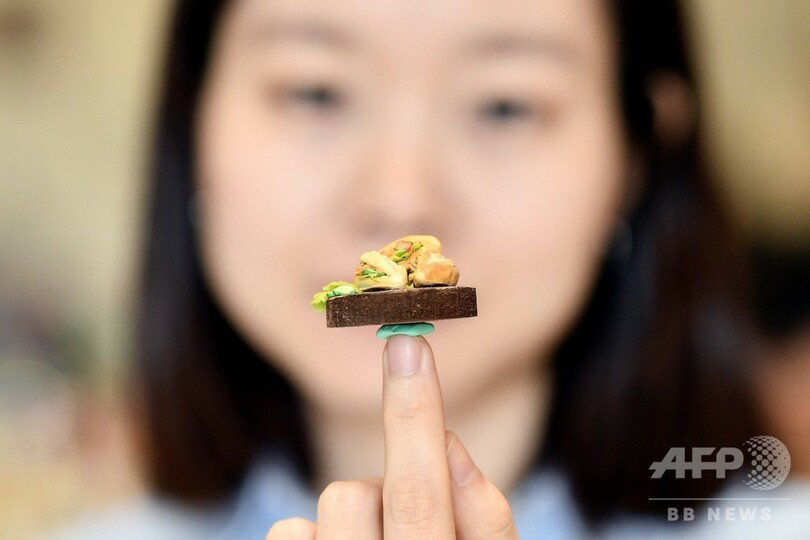 【11月7日 AFP】ベトナム人アーティストのグエン・ティ・ハー・アン(Nguyen Thi Ha An)さん(28)は目を細めて集中し、フォーの入ったわんに赤唐辛子を添える。わんの大きさは、硬貨よりかろうじて大きい程度だ。これは、アンさんが多くの時間を注いでいるミニチュア粘土細工を仕上げる様子だ。